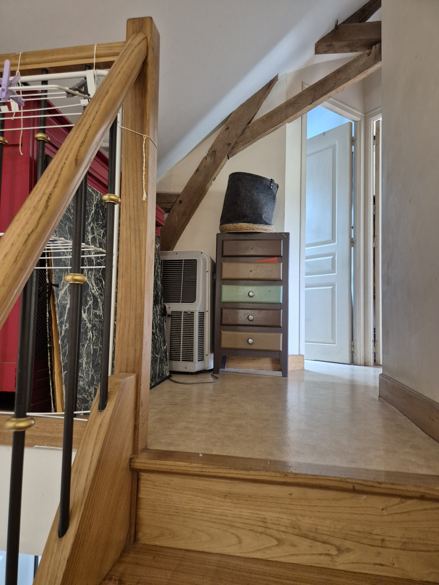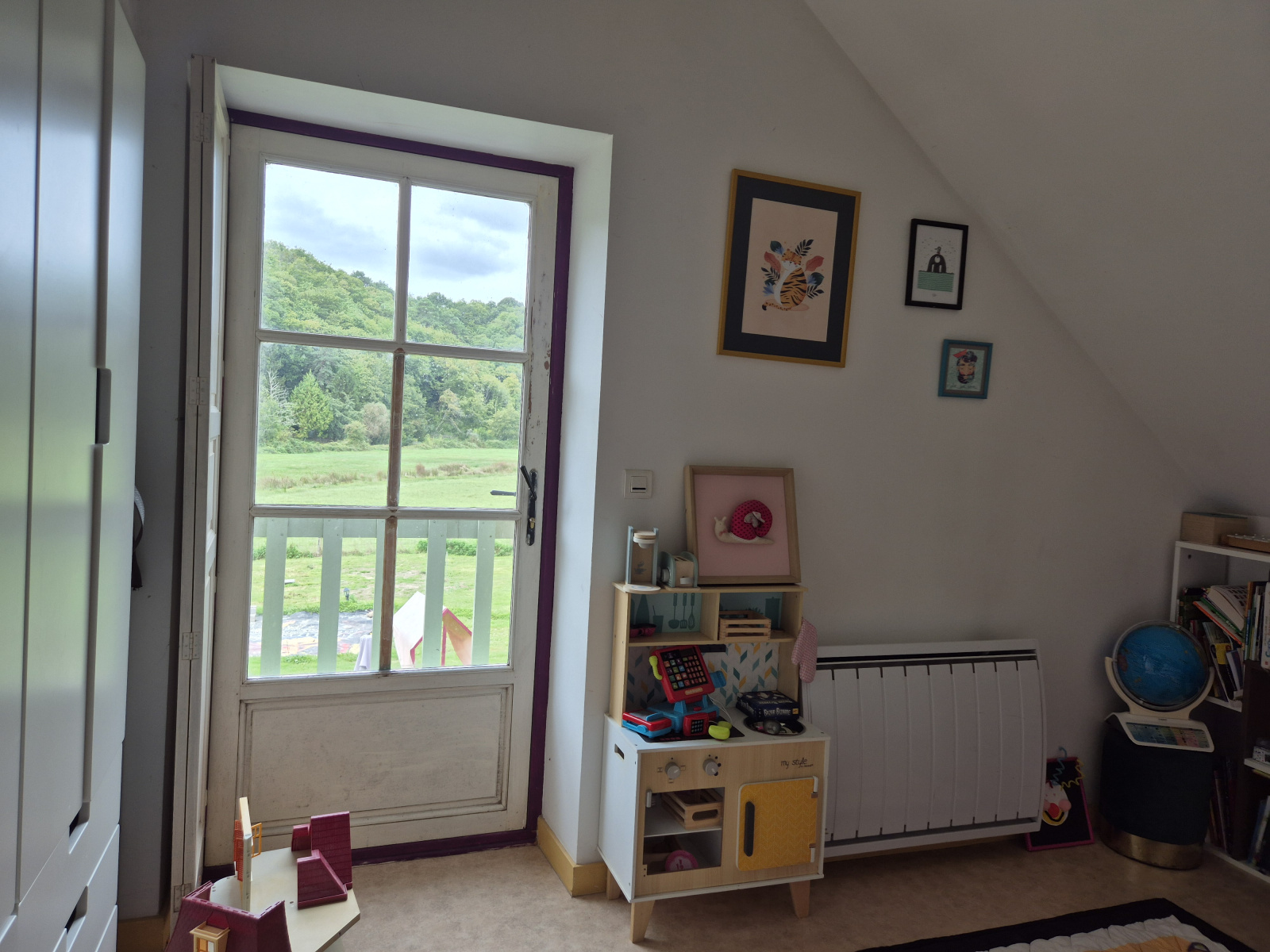 À l’étage, vous trouverez deux chambres lumineuses, une salle de bains ainsi qu’un WC.