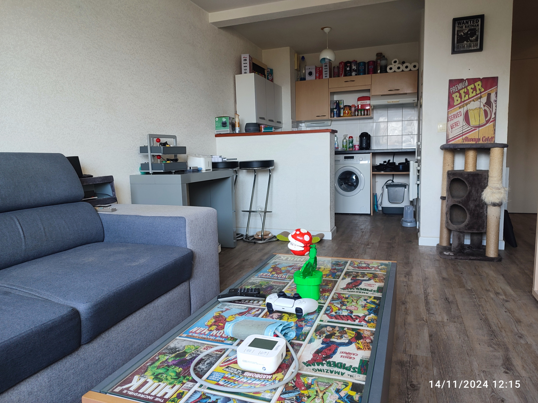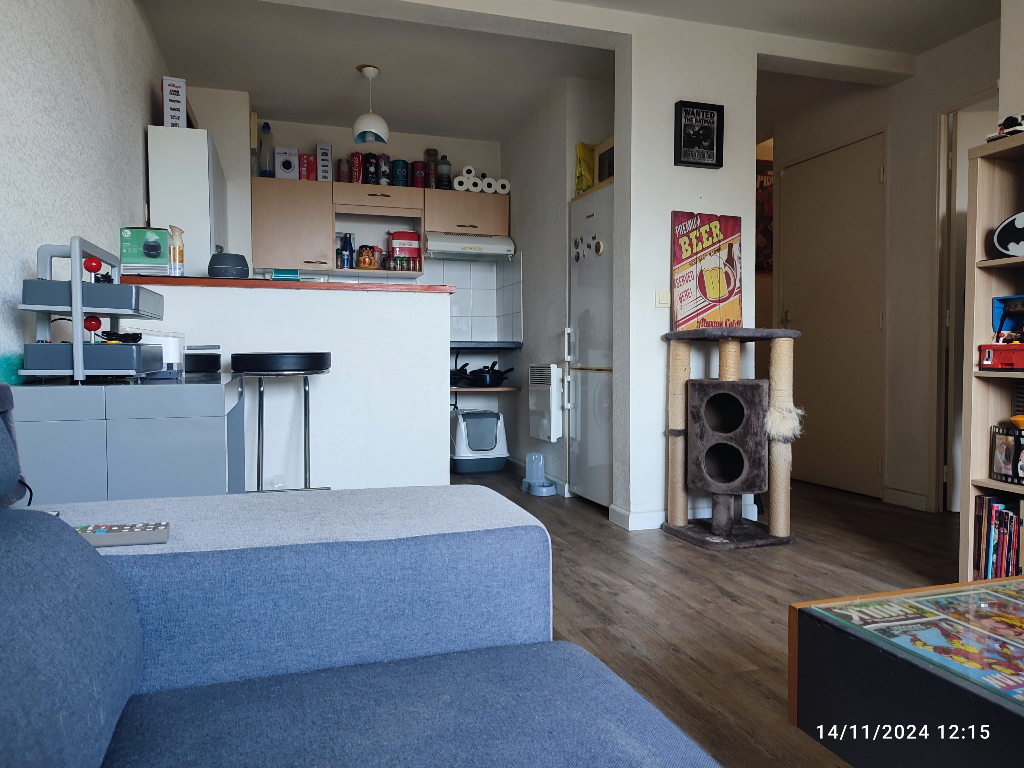 Pièce ouverte sur la cuisine avec séparation style muret petit bar