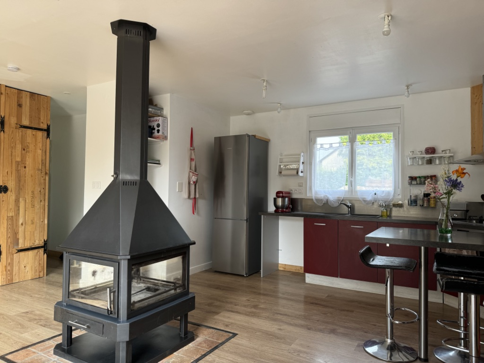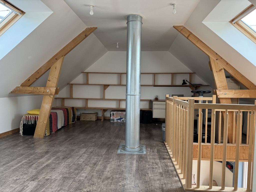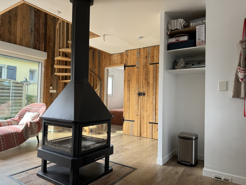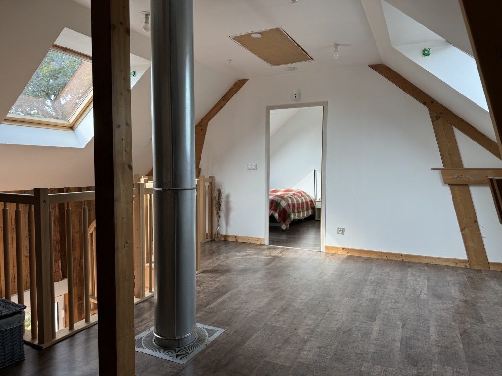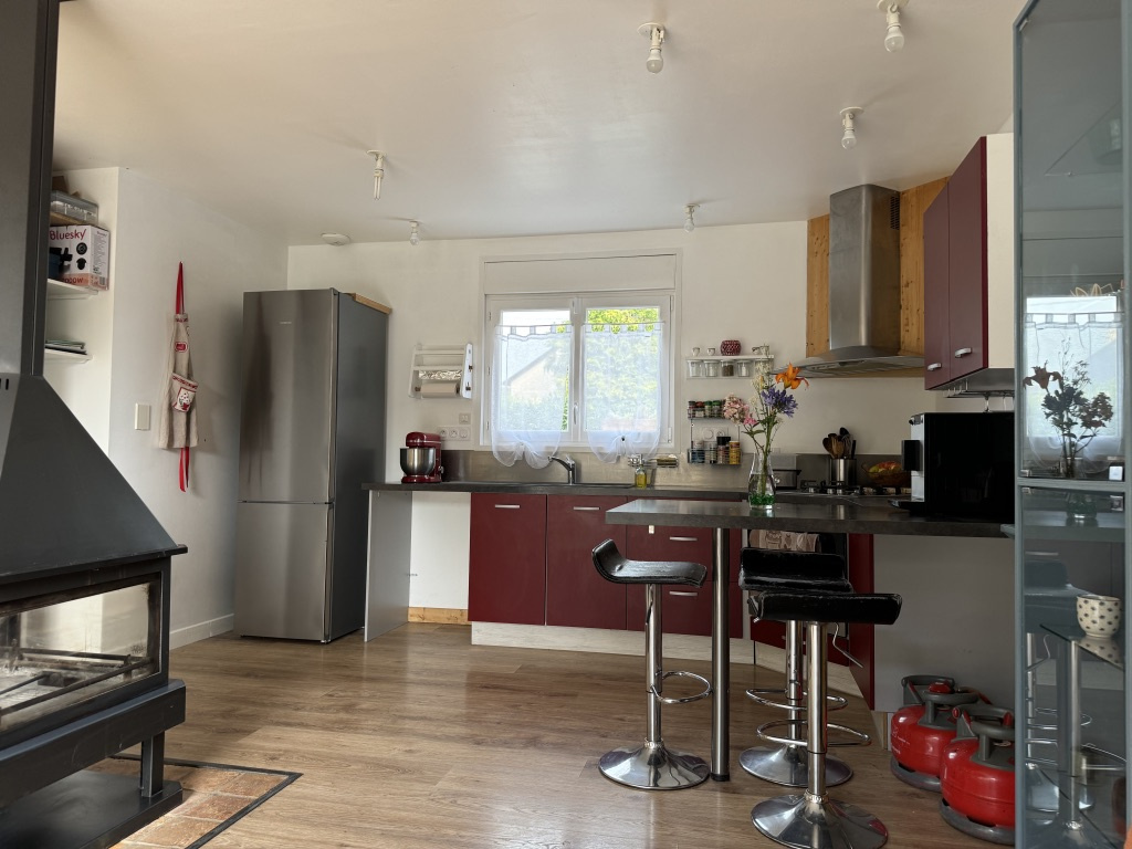 Maison de 2013, individuelle ,de plain-pied construite en bardage bois, d'une surface de 86 m². Comprenant au rez de chaussée, une cuisine ouverte, un salon séjour, avec poêle au bois centrale, une chambre, une salle d'eau et un wc. Au 1 er étage, une chambre, une mezzanine pouvant faire office de chambre ou bureau, une salle d'eau et wc. Chauffage avec un système de pompe à chaleur, ainsi que des panneaux photovoltaiques (semi-revente). Un garage, un atelier. Le tout sur une parcelle de 276 m².