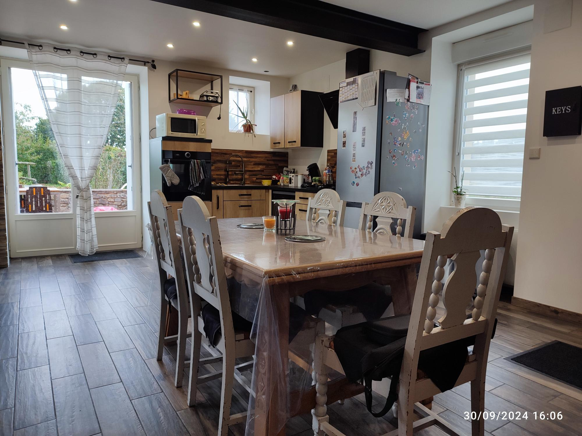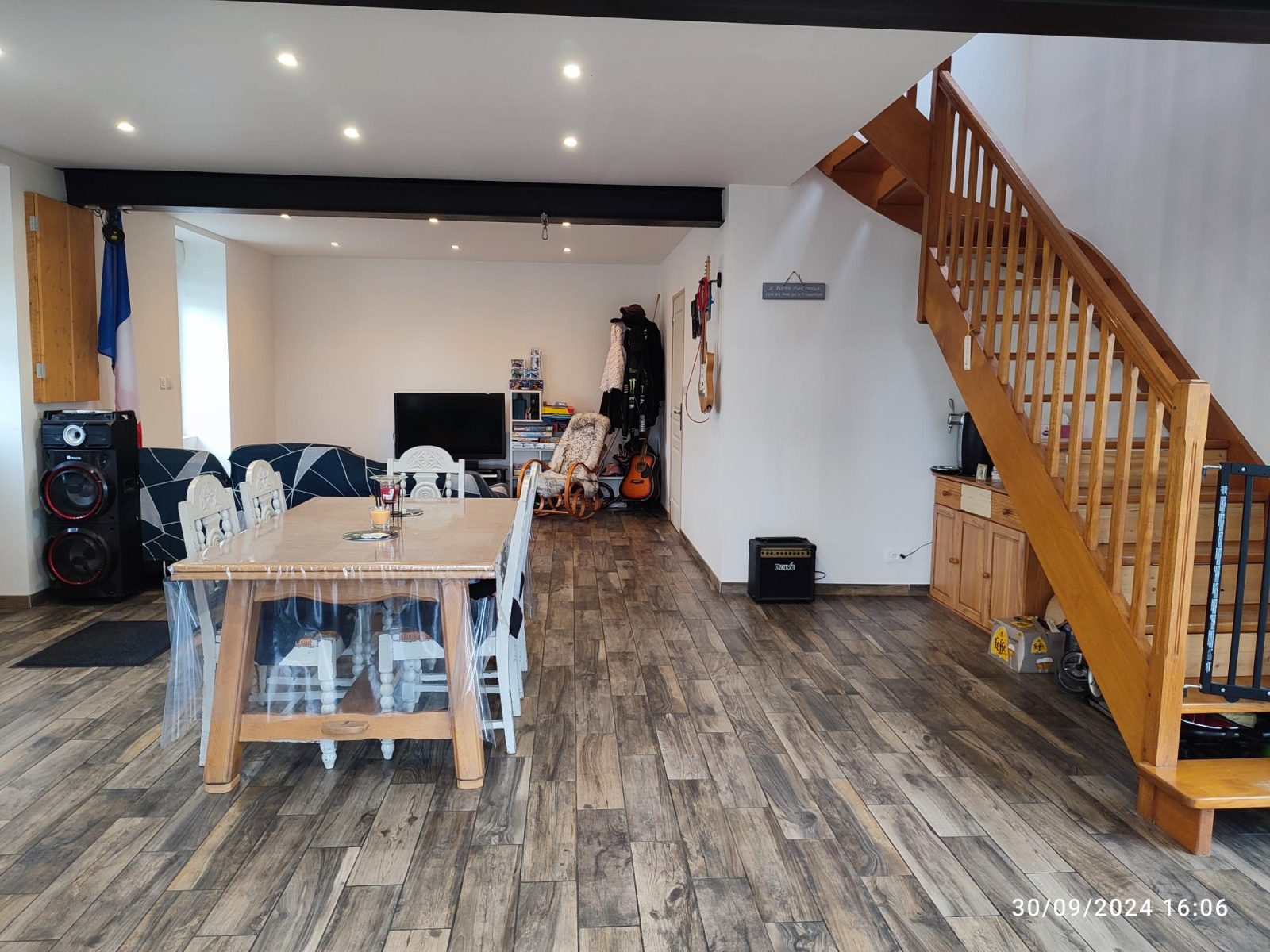 A Saint-Georges-Le-Fléchard, maison en pierre individuelle, d'une surface de 86 m² comprenant au rez de chaussée, une cuisine aménagée, équipée,ouverte sur le salon,séjour avec un poêle à bois. Un cellier et un wc. A l'étage, deux chambres, un bureau, une salle de bain et wc. 3 dépendances en pierres. Le tout sur un terrain de 3293 m² clos et arboré. ( Une partie du terrain est constructible)